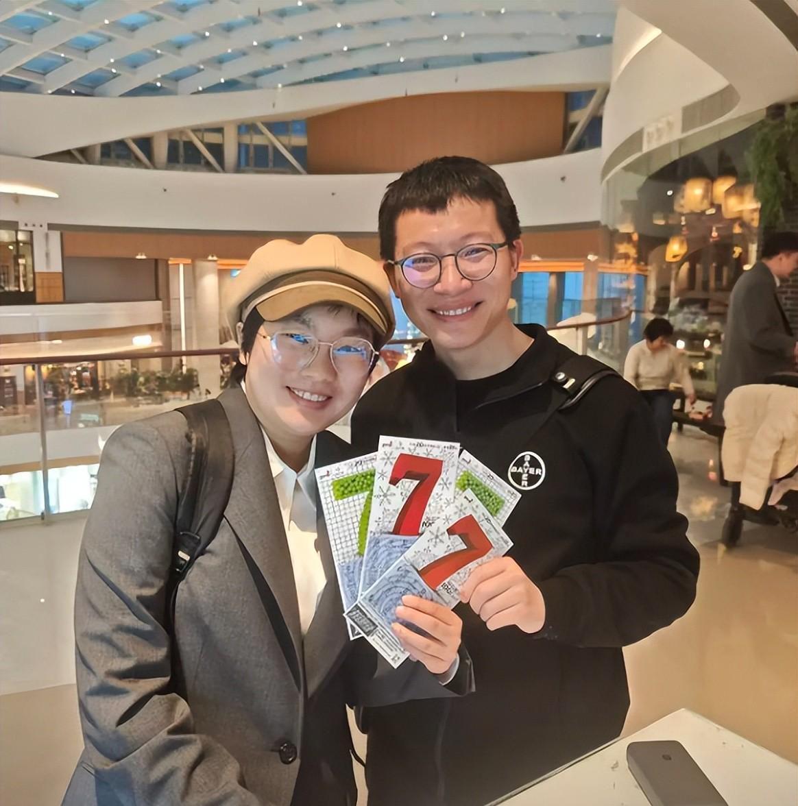 两人还被路人拍到一起甜蜜约会,兴高采烈地刮彩票。