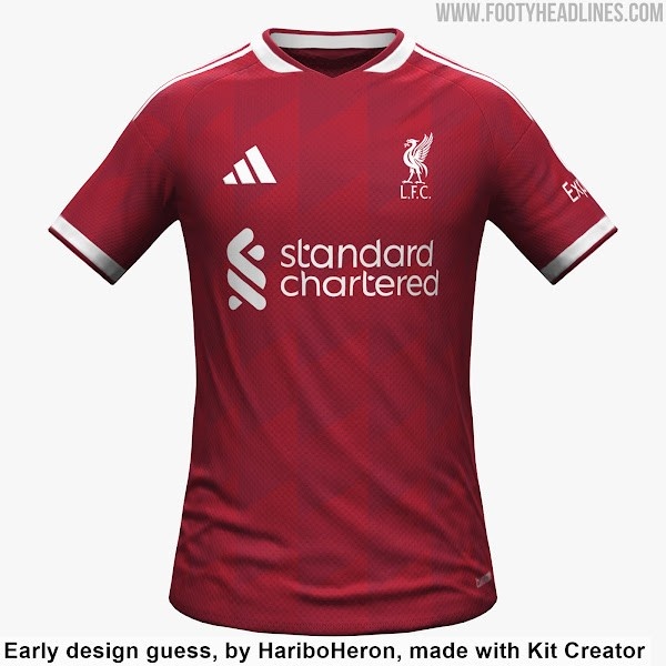 根据利物浦球衣专家“FumlerRawk”的消息,设计师HariboHeron已制作了利物浦26-27主场球衣的早期效果图。利物浦主场球衣将采用比本赛季更深的色调,搭配阿迪达斯全新模板以及特殊图案。