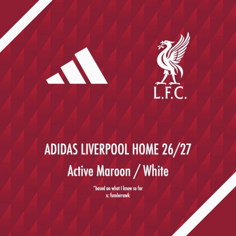 根据泄露信息,利物浦26-27主场球衣将包含图案设计,利物浦球衣专家“FumlerRawk”预测为钻石纹样,但该细节尚未得到官方确认。